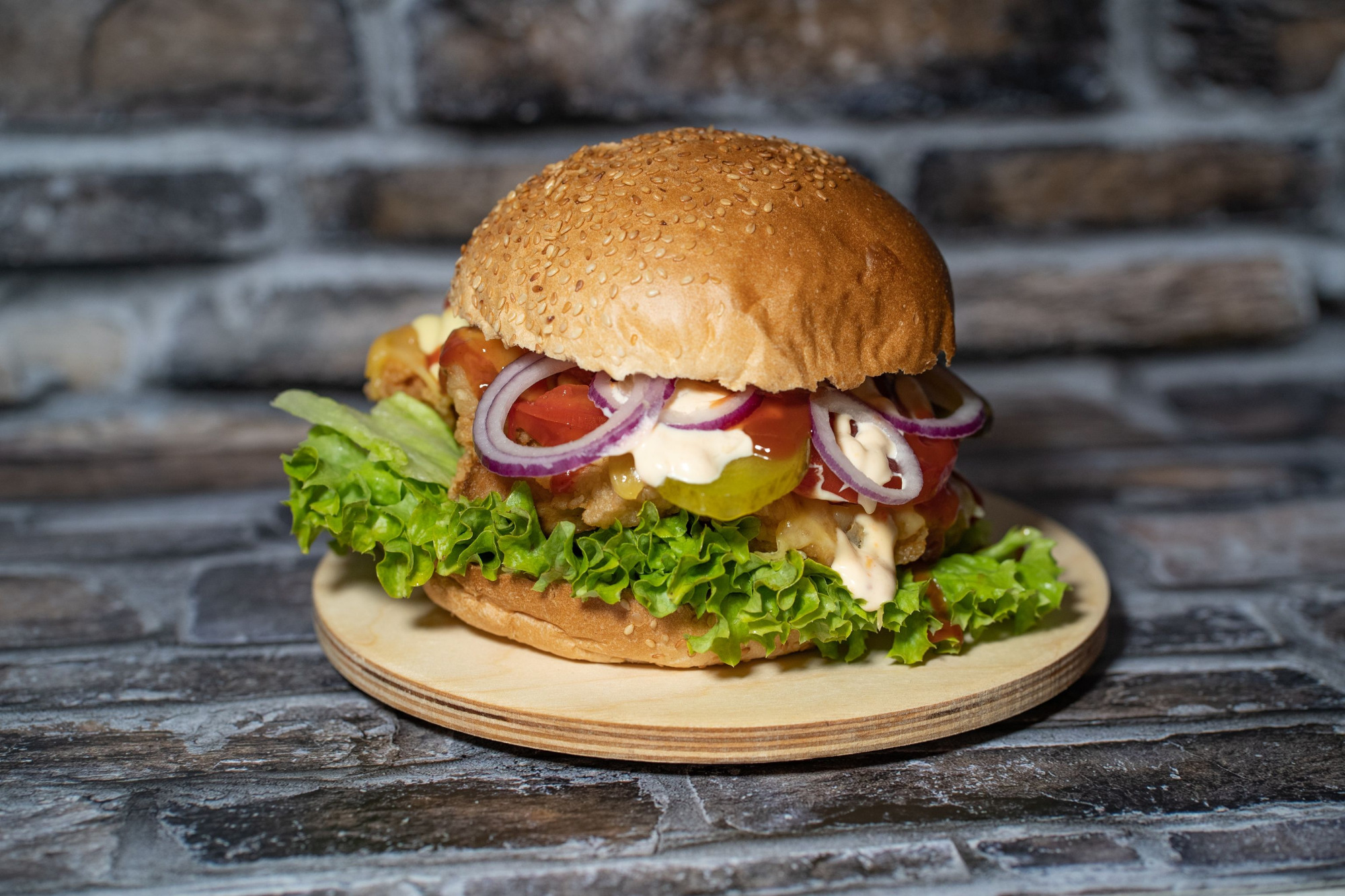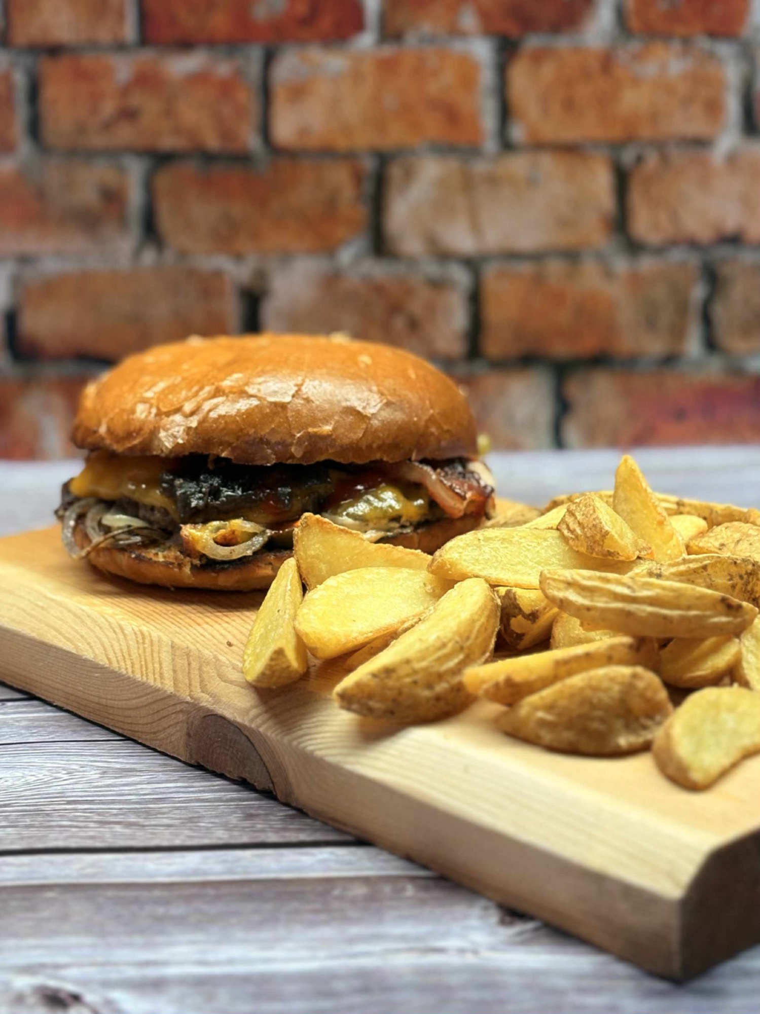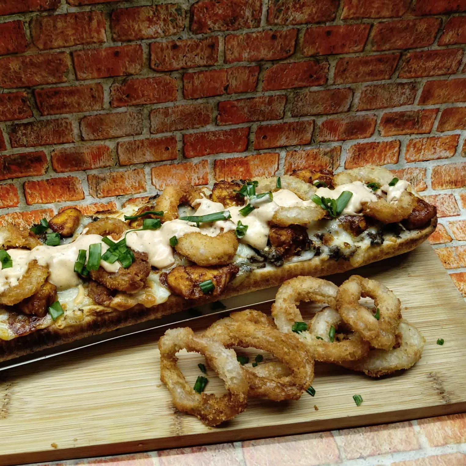 Chrupiące krążki cebulowe, aromatyczny kurczak barbecue, ciągnący się ser i nasz wyjątkowy sos.